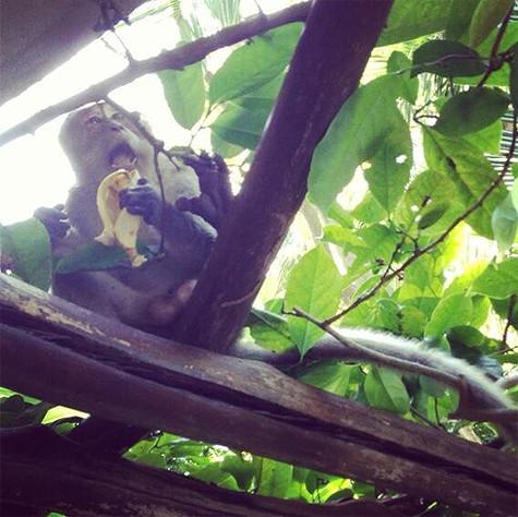 Артистка с поклонниками фотографиями обезьян, которые совершенно хозяева ведут себя с балериной, от нее еды, шипят и огрызаются. Балерина призналась, боится животных, накормила их бананами в надежде, они от отстанут. Однако не тут-то было. Одна наглая обезьяна не удовольствовалась одним лакомством и начала терроризировать Волочкову.