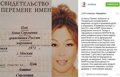 «Привет, любимые! ? Понедельник ознаменовался решением, я принимала долго и обдуманно. Я паспорт, а с ним и ИМЯ! раздвоение личности. Теперь я и АНИТА! В моего рождения мама хотела назвать меня Аннет, в французской революционерки Аннет Ривьер, но в время, в столе не иностранное имя. АНИТА тоже оставили внимания, и маме ничего не оставалось делать, как вписать в о рождении имя Анна. С я чувствовала, имя Аня мне не ни внешне, ни внутренне. с именем АНИТА всегда была и позитив. наделило меня мощной энергией и особым драйвом. С этим именем связаны творческие победы, счастливые мгновения моей жизни. Я убеждена, что если чувствует гармонию внутри себя, то и с миром он войдёт в контакт легко и уверенно. Никогда не поздно что-либо менять в себе. И моё в этом мне помощник!» (орфография и пунктуация автора сохранены, - прим. Ред.).