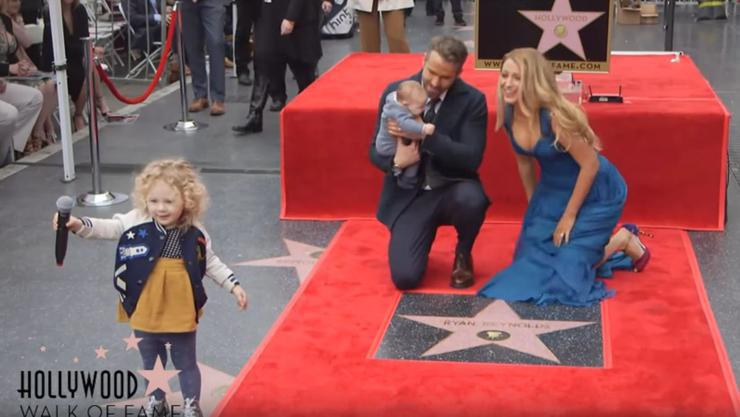 Райан и Блейк с дочками на открытия Рейнолдса на Аллее славы в Голливуде. youtube.com