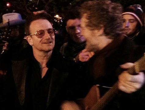 Лидер группы U2 Боно небольшой уличный концерт в своего родного города Дублин. Вместе с солистом группы The Frames Гленом Хансардом рокер исполнил рождественские песни. Выступление дано в организаций, занимаются помощью ирландским бездомным.