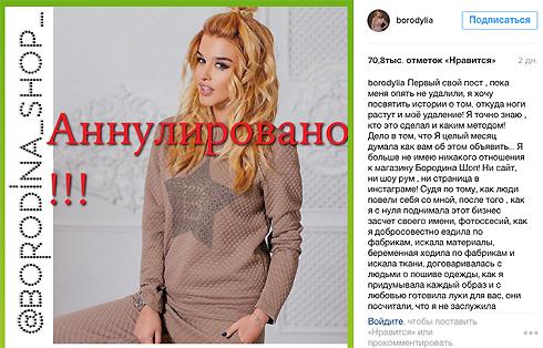 «Первый свой пост , пока меня не удалили, я посвятить о том, откуда ноги растут и моё удаление! Я знаю , кто это сделал и каким методом! в том, Я целый месяц как вам об объявить... Я больше не имею никакого к Бородина Шоп! Ни сайт, ни шоу рум , ни в инстаграме! по тому, как люди себя со мной, после того , как я с нуля поднимала этот бизнес своего имени, фотоссесий, я ездила по фабрикам, материалы, беременная ходила по фабрикам и ткани, договаривалась с людьми о пошиве одежды, я каждый образ и с любовью готовила для вас, посчитали, я не заслужила ничего((( меня обманули.. я была на отдыхе, я много жалоб на доставку, на качество товара и на обслуживания и что нужно за это взяться самой! И вникнуть, почему у проблемы! Но мне всячески это сделать! Не предоставив ни документа! предложения, вам сделают , быть обманом! только заявлений!» (здесь и далее орфография и авторов сохранены, - прим. Ред.), - откровенно написала Ксения, добавив, теперь намерена заняться созданием нового бренда, которым будет лично.