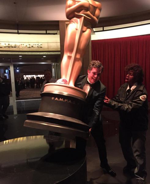 Номинант на премию «Оскар» в категории «Лучшая роль второго плана» Марк Руффало решил не дожидаться решения киноакадемиков и сам завладеть статуэткой. «Хотел взять себе ту, что побольше. Но остановила меня. черт!» — шутливое фото актер. Премию Марк не получил, но зато картина с участием «В внимания» удостоилась двух «Оскаров» — за лучший фильм и сценарий.
