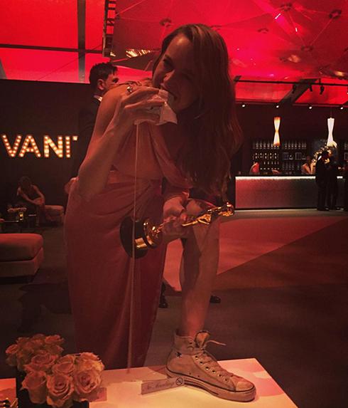Энн Хэтэуэй, удостоившаяся премии «Оскар» в 2013 году, эту церемонию. Однако актриса не могла не своих коллег. В «Инстаграме» беременная Энн снимок огромного с подписью: «Самый «оскарный» день в жизни. Желаю всем удачи!»