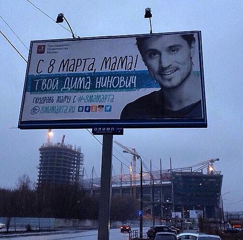 В дни весны Дима Билан подумал о самой и любимой женщины на свете – своей мамы, Нины Дмитриевны. Артист сделал для нее необычный сюрприз: он «С 8 Марта, мама!» на огромном билборде, разместил на из улиц. Трогательно, что подписался любящий сын именем мамы в отчества – Дима Нинович. О своем подарке рассказал в микроблоге, фото огромного плаката и к подпись: «Диманинович к 8марта. Мама моя Нина, решили такую к празднику!».