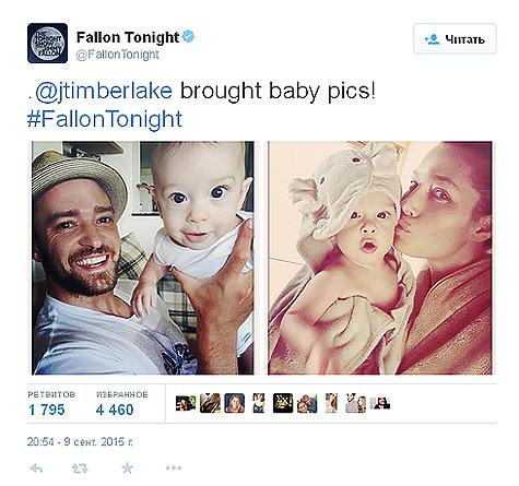 В шоу «The Tonight Show» Джастин Тимберлейк показал сразу два свежих снимка сына Сайласа, 11 исполнится пять месяцев. Фото: Twitter.com/@FallonTonight.