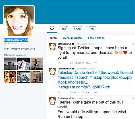«Ухожу из «Твиттера». Надеюсь, я лучиком света для моих родных и близких», – Катриона Уайт в последнем посте. Фото: Twitter.com/@littleirishcat.