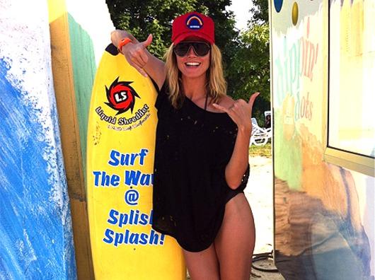 Известная топ-модель Хайди Клум своих поклонников в сети Twitter, в фотографию, на которой предстала обнаженной: тело манекенщицы едва прикрыто бикини. Сразу видно, Хайди в физической форме: продемонстрировала загорелый плоский и ноги. Судя по фото, Клум лежала на пляже в бутылочки пива, скромно припрятала под ногой. Снимок красавица подписала так: "Великолепный день!"