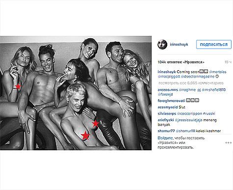К снимку комментарии были более резкие. «Ирина, же вы бесстыжая!!!», «Ну ты и шлюха!», «Без Роналду вразнос пошла. Не его мать против была», «Даже рядом не стоит с такими моделями как Жизель Б. и А.Лима, опустилась низко ради пиара», «Ирина, думаете ваша вами бы за такие фотографии? Просто себя ниже плинтуса. Зачем спрашивается?», «Если Вы так зарабатываете и Вам нравится, то Вас жаль. Вы низко упали», «Оргия!» – набросились на Шейк подписчики. Подобную эмоций вызвала черно-белая фотография, на обнаженная Ирина и модели вместе со фотографами Мертом Аласом и Маркусом Пиготтом. Снимок был сделан мужского DSECTION, который в честь своего со дня издания модный рассказать о жизни и показать своих фэшн-муз.