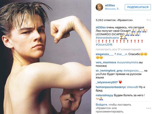 a030aa: «Очень надеюсь, сегодня получит свой Оскар!!! LEONARDO DICAPRIO!!! Yesss!!!»