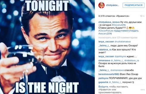 chistyakova_ionova: «Ну что, мои -))) сегодня Oscars2016. Ставки делать будем??? OscarForLeo. Дадут не могут не дать».
