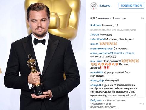 Судя по всему, в России переживали за Ди даже больше, чем в Америке. И трансляция с вручения премии «Оскар» не поклонникам держать за кулачки. Не остались в стороне и звезды, которые мужественно боролись со сном и искренне радовались да Лео.