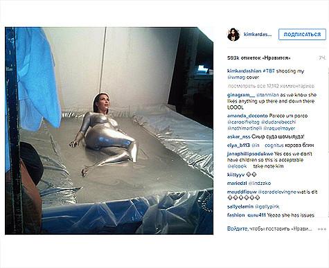 Ким Кардашьян опубликовала в своем «Инстаграме» весьма откровенное фото. На снимке звезда реалити-шоу абсолютно обнаженная в серебряной красе.