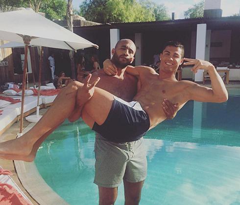 На одном фото держит Криштиану на руках. «Счастливые молодожены! Хахахаха. рядом, поддержать тебя, старик!» – подписал снимок Хари, вставив также значок «сердечко». «Прохлаждаемся бассейна с моим братаном. рад тебя в моей прекрасной Марокко», – сообщил в к другому снимку кикбоксер марокканского происхождения.
