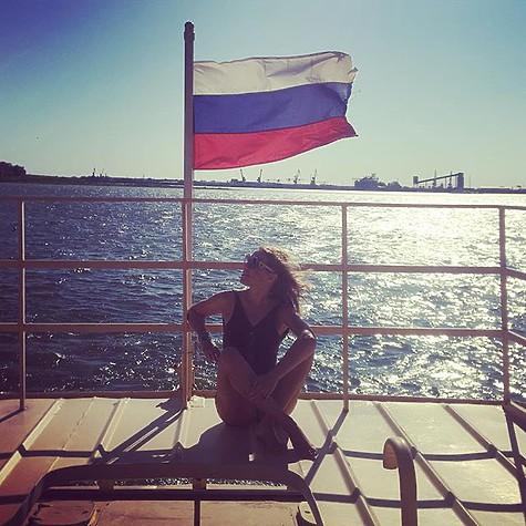 Наибольший вызвал снимок, на Ксения в на фоне российского флага. К фигуре телеведущей претензий не было, но общая композиция показалась весьма противоречивой.