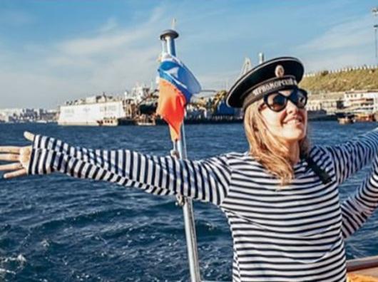 Во речной прогулки Ксения в к команды корабля. Фото: социальные сети