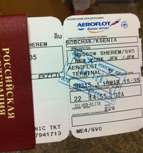 "Лечу в NYC. Ашот спутал США карты - мы решили свернуть операцию. Короче, меня Джессикой. Я из Оклахомы. Bye", - написала Собчак в Twitter и запись снимком билета.