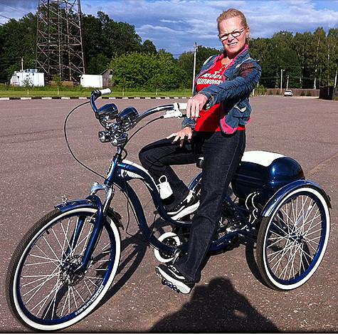 Лариса Долина с гордостью демонстрирует усовершенствованный велосипед. Фото: www.larisadolina.com.