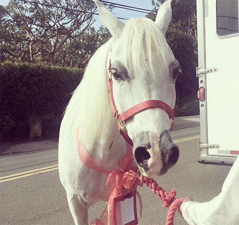 «Сегодня к моего дома мне Белого с небес. Это невероятная, возвышенная, божественная девочка. Я буду ездить на ней, заботиться о ней и ее всегда. Я поражена!» — певица в «Инстаграме», фотографию лошади. К счастью для ангела, в особняке Гаги в Малибу есть готовая конюшня, так что у животного сразу же появилась собственная над головой.