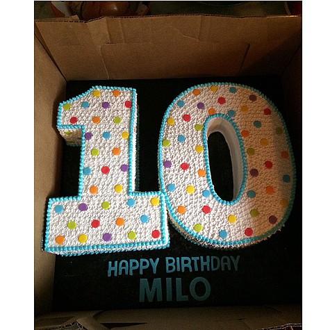 Вместе с снимком Майло в младенчестве, Тайлер также опубликовала большого в виде цифры «10», который она приготовила в сладкого подарка своему на день рождения.