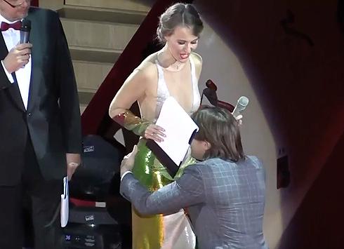 На сцене тележурналистка появилась в шаре. Фото: Instagram.com/belonika
