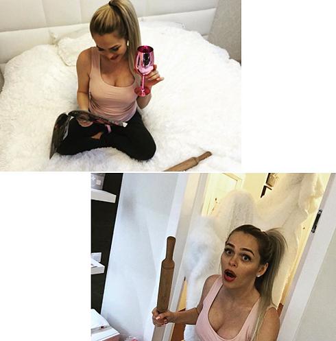 Этим коллажем Анна Хилькевич хотела повеселить своих подписчиков, изображая, как она со скалкой добывала плед мечты. ФОТО: INSTAGRAM.COM/ANNAKHILKEVICH