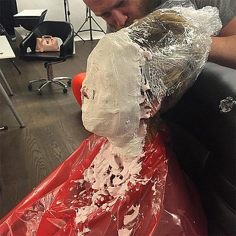 «Ощущения, не из приятных. Но я люблю преодолевать себя. все лицо обмазывают вазилином, закрывая при этом брови и глаза! Потом очень быстро альгинат, нужно успеть за 2 минуты, что он быстро застывает, накладывают бинт, держат 10 минут, и - лица готов!» - Бузова процесс подготовки к съемкам.