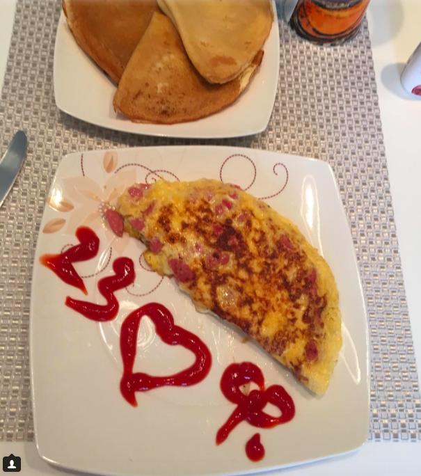 Пока фанаты обсуждают, будут ли Дмитрия штрафовать на 300 евро (напомним, матча «Фенербахче» - «Локомотив» он подошел к трибунам, где сидели болельщики «железнодорожников», и игровую майку, которой оказалась еще – с Владимира и «Самый президент»), Дмитрий наслаждается тихими семейными буднями. Сегодня с утра супруга спортсмена, телеведущая Ольга Бузова, ему романтический подарок. проснулась с пораньше и завтрак – оладушек и сделала омлет, его съедобной “поздравлялкой”. Как призналась Ольга, завтрак был уничтожен моментально. “Хорошо, успела сфотографировать”, - посмеялась она.