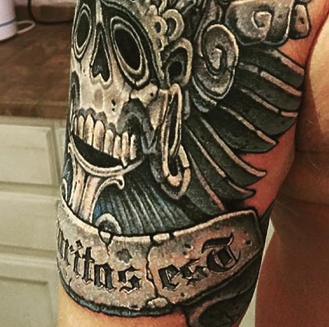 В свою очередь, у Владимира на руке готический череп. Оба пока не комментируют, выбили на телах именно эти и они означают.