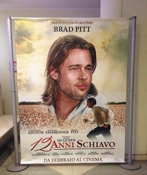 В ряде кинотеатров Италии на постерах, анонсирующих фильм «12 лет рабства», крупным планом изображены Брэд Питт или Майкл Фассбендер. А исполнителю главной роли Чиветелю Эджиофору на афише отвели совсем немного места. При этом и Питт, и Фассбендер сыграли в о свободном чернокожем человеке Соломоне Нортапе, похитили и в рабство, роли. И тот факт, что Брэд также в качестве продюсера ленты, не оправдывает его изображение планом на плакате. Часть возмущенных блогеров обвинила компанию-прокатчика в расизме. Итальянские дистрибьюторы немедленно убрали все спорные афиши, извинения и пообещали провести внутреннее расследование с последующим наказанием виновных в разразившемся скандале.