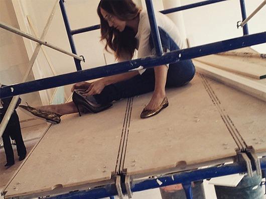 В момент звезда сериала «Секс в большом городе» обустройством офиса в Нью-Йорке. Помещение, Сарой, пока совсем не к работе: там полным ходом идет ремонт, пол засыпан побелкой, лежат доски и стоят банки с краской. Однако этот беспорядок не Паркер. Наоборот, актриса, взгромоздившись на строительные леса, продолжает творить, создавая свою новую коллекцию обуви.