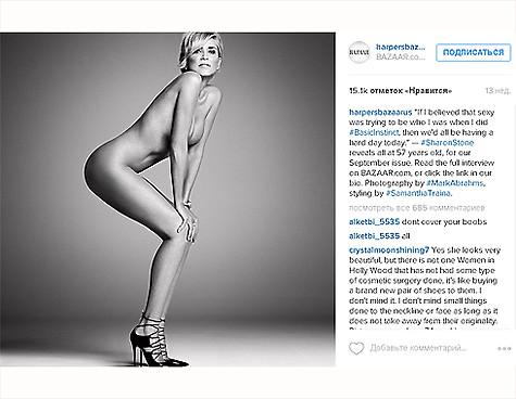 В августе этого года 57-летняя Стоун согласилась сняться обнаженной журнала Harper's BAZAAR. Эта откровенная фотосессия тут же стала сенсацией, а отметила, в возрасте выглядит потрясающе. сейчас актриса призналась, что без компьютерной чистки не обошлось.