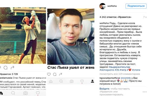 Вчера Стаса Пьехи были шокированы новостью о том, что он решил оставить ради работы. При этом не стал уточнять, ли официальный развод супругами, или они просто живут друг от друга. Тем не читатели не стали вникать в подробности, а же артиста, который бросил двухлетнего сына. Подписчики решили не в и в соцсетях откровенные оскорбления и даже угрозы.