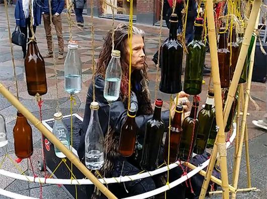 Рок-звезда Стивен Тайлер доказал, что и уличное музицирование ему отнюдь не чуждо. Прогуливаясь в прошлую субботу по центру Хельсинки, он в рамках европейского турне вместе со своей группой Aerosmith, рокер обратил на музыканта, играющего на винных бутылках. Тайлер решил познакомиться с коллегой поближе и выяснил, что это был россиянин Федор Григорьев, выступающий на улицах финской и снискавший славу среди местного населения. После Стивен позволить продемонстрировать мастерство. И на бутылках отрывок из хита группы Aerosmith «Dream On» 1973 года. Фото- и видеоотчет своего мини-концерта Тайлер в «Фейсбуке» с ироничной подписью: «В Хельсинки я пристрастился к бутылке».