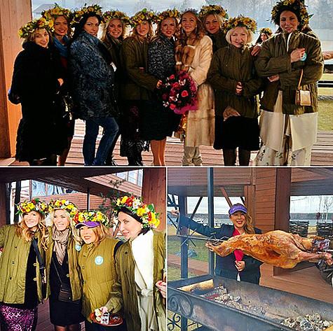 Как и полагается, гости приехали на торжество в соответствующих случаю нарядах. Однако в выходные не весенним солнышком, и замерзших красоток администрация ресторана отогревала телогрейками. Свой рождения Татьяна Праздником Весны, поэтому все украсили свои головы венками, пестротой и красками радостное настроение. Тяжелое испытание прошла Анна Семенович, которая уже второй месяц жесткой диеты.