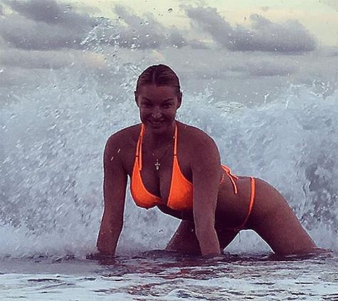 К счастью, Настя во купания не пострадала, на следующий день в новом купальном костюме она отправилась на пляж. Результатом стала очередная фотосессия и шпагат, сделанный в пене морской. «Ну и Волочковой в море! Сейчас его накроет волной!!!!Ждите фото!!» - артистка подписчиков. И действительно: последовали снимки на камнях, в и без, а снимок в стиле Playboy, в море, в же день. «Вы не представляете, как в этом море мокро!!!!» - неожиданную артистка.