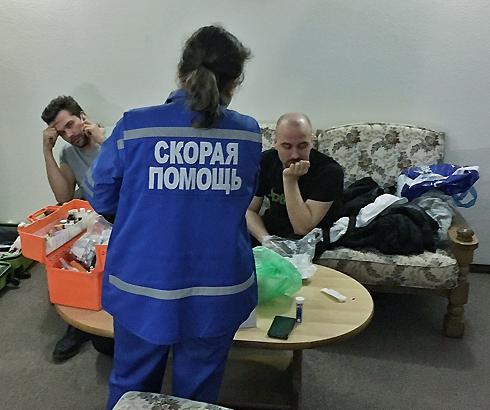 После перелета в артистам вызвали «скорую помощь». Приехавшие врачи, уколы, не выявили осложнений и уехали. дали концерт в Гусев, на тяжелое самочувствие. на этом испытания артистов не закончились. На день Дмитрия ухудшилось. В этот день у было сразу два шоу в городе Балтийске. После второго концерта Дмитрий был госпитализирован в из Калиниграда.