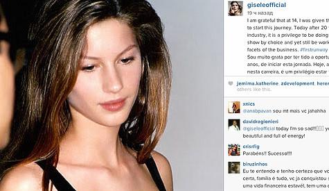 В среду в Сан-Паулу Жизель Бундхен в раз на подиум. Самая известная и востребованная в решила уйти на пенсию и себя хлопотам и заботам о муже и детях. На прощание Жизель поделилась со поклонниками фотографией, на она изображена в возрасте во время своего первого прохода по подиуму.