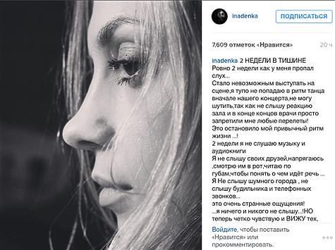 В своем микроблоге Надежда Сысоева пожаловалась, что оглохла. Фото: Instagram.com/inadenka.