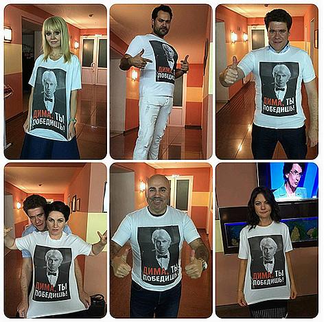 Коллеги Дмитрия и надели с портретом и надписью «Дима, ты победишь!». В Instagram уже появился аналогичный хештег.